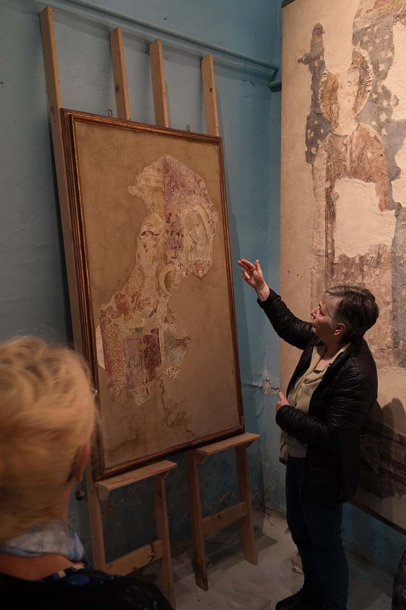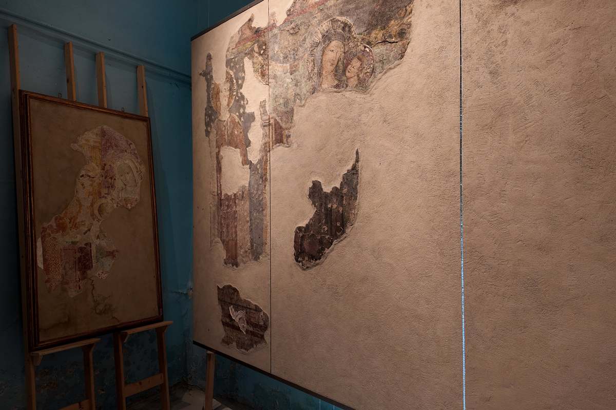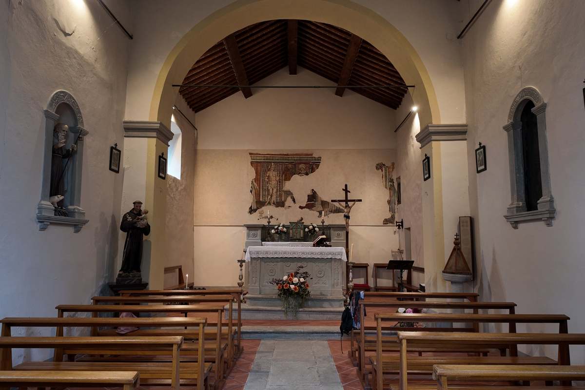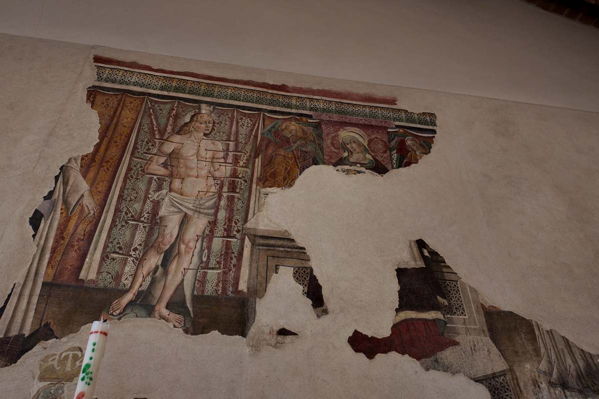 The most significant frescoes have been attributed to the so-called Master of Sestino, an artist active between the end of the fifteenth century and the beginning of the sixteenth century. In particular, the frescoes behind the main altar, which must once have extended over the entire wall, have been recovered. This pictorial cycle, dating back to the second half of the fifteenth century, depicts a Madonna and Child flanked by musician angels. Among the figures, a beautiful St. Sebastian stands out, almost perfectly preserved, and a Camaldolese monk saint who, in a singular way, keeps a miraculously tamed wolf on a leash.