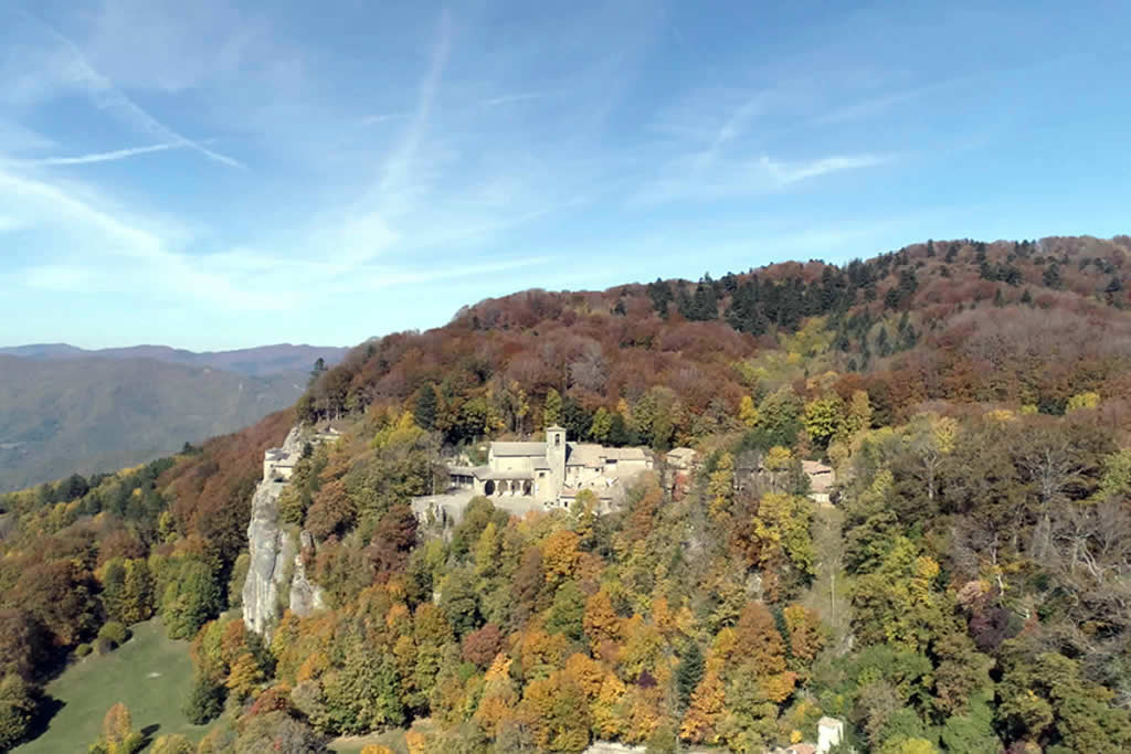 Chiusi della Verna, located in the charming Arno and Tiber river valleys, is positioned in the heart of the Casentinesi Forest National Park. Visible from a distance, the area’s highlight is the San Francesco alla Verna Sanctuary, a structure that rises from the southern flank of Monte Penna. The area captures the intensity of Franciscan spiritual devotion, an aspect that's enhanced by its particularly dramatic location.